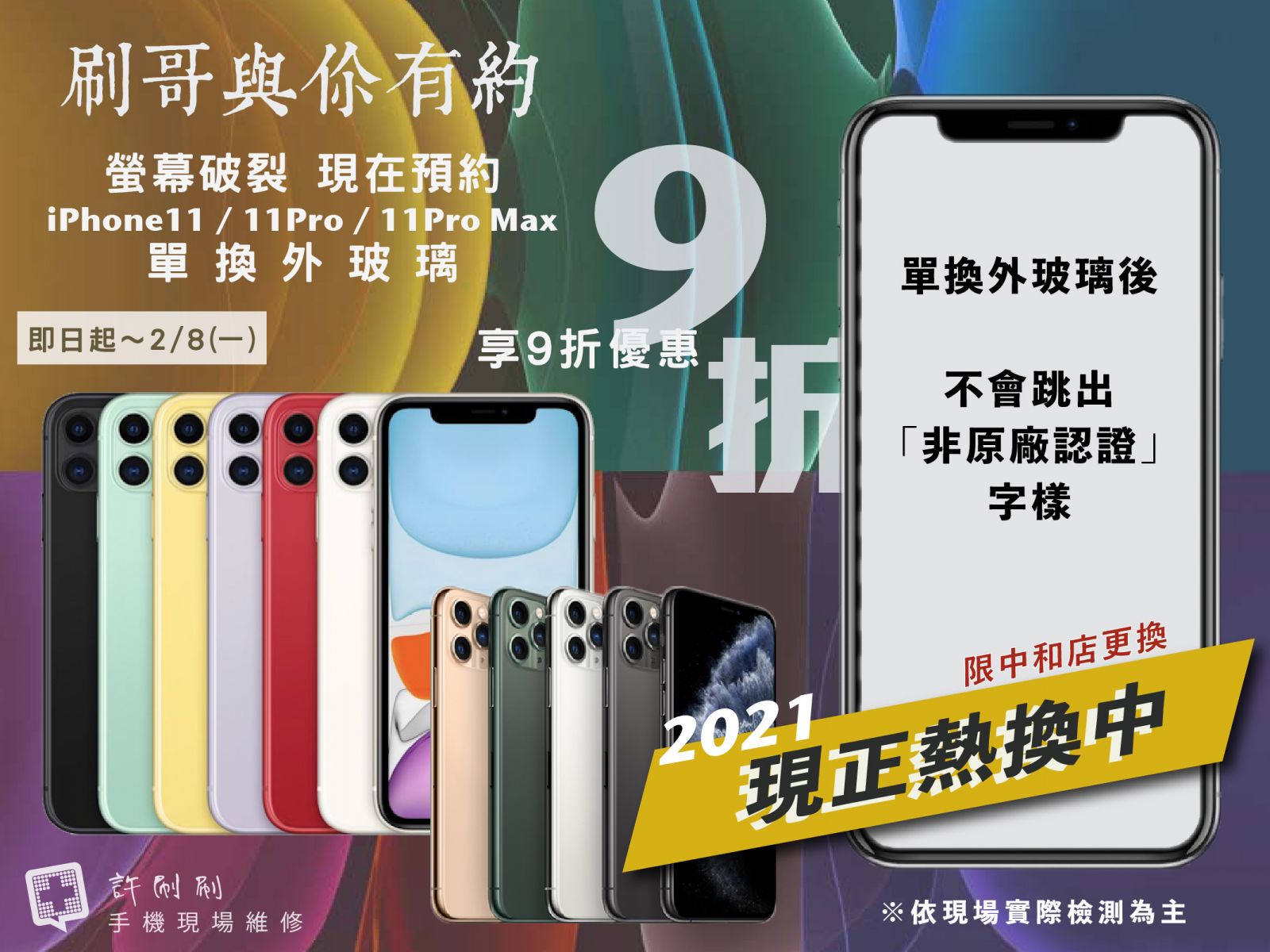 i11~i11ProMax機型,螢幕玻璃翻新,需預約至中和店施作