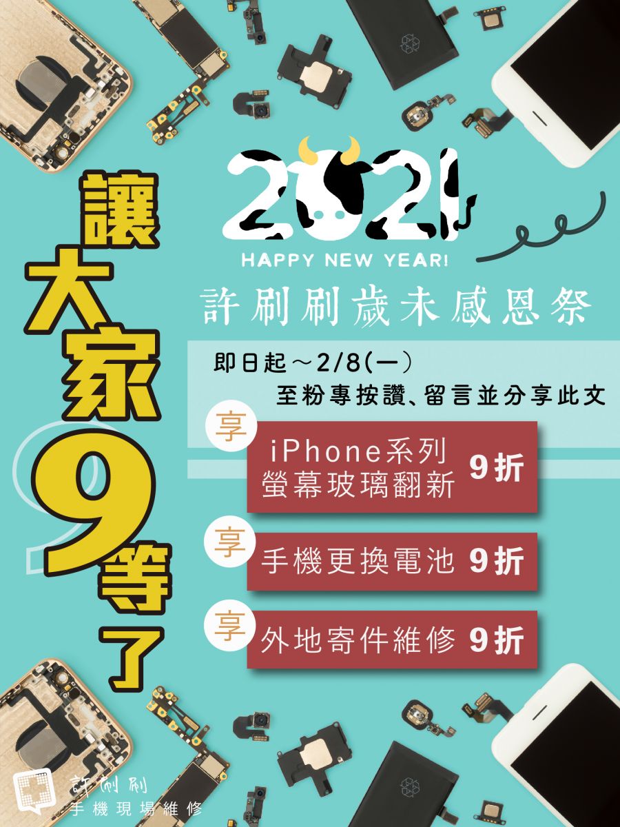 趁過年前,趕快來把遲遲沒修的螢幕修好~ 換一顆新電池,才可以好好過年 ![]()